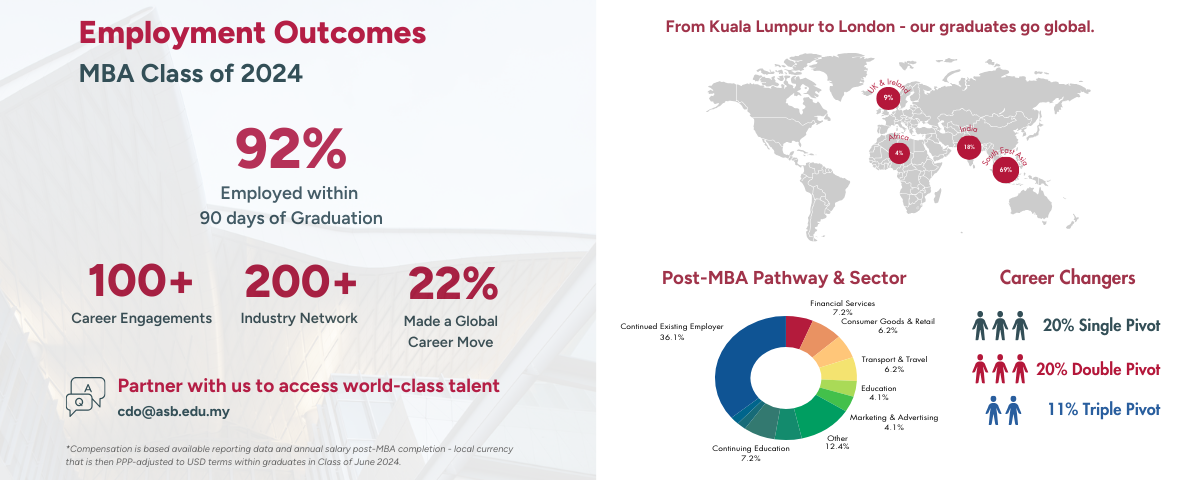 At ASB, we maintain strategic partnerships with over 200 industry partners across Asia, from established multinationals to innovative startups. Our career development curriculum is tailored for today’s hiring environment.